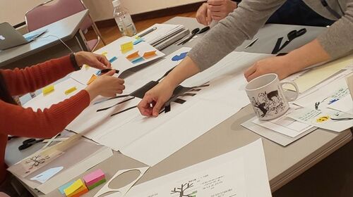 ひゅ~ちゃんです。先日、はやひろさん、ひゅ~ちゃん、ワークショップデザイナーのけんけんの3人で、ある事業所さんの研修に携わってきました~。研修といっても、ワークショップなんです。講義はなくて、参加者の皆さんがしゃべり、考え、手を動かし、共有…