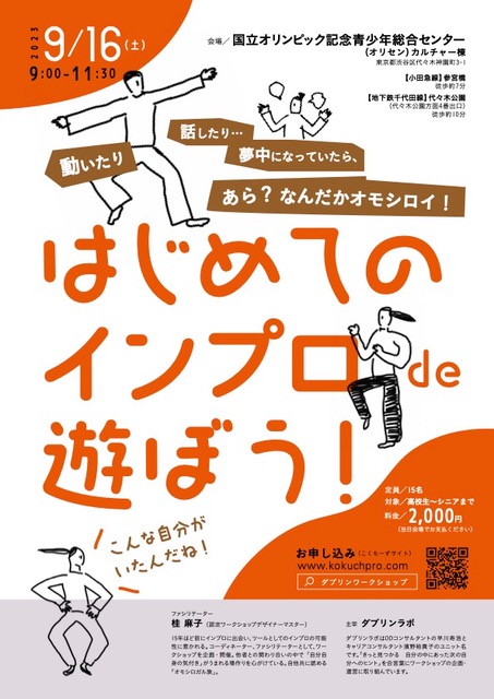 9月16日(土)に、代々木のオリンピックセンターで「はじめてのインプロde遊ぼう!」を開催しました。